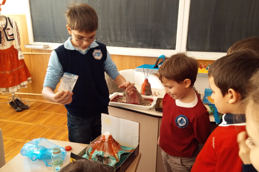 Luni, 16 februarie 2015, Şcoala Gimnazială Internaţională Agora în parteneriat cu Şcoala Gimnazială „Oltea Doamna” a derulat proiectul cu titlul „Planeta activă – vulcani şi cutremure“, o temă ce a fost filtrată prin Geografie, Tehnologie, Ştiinţe, Muzică, Istorie, Artă, Societate, Educaţie fizică şi Teme internaţionale. La Geografie, copiii au adus informaţii despre cei mai importanţi vulcani din lume, despre plăcile tectonice şi mişcările lor, despre straturile pământului, despre gheizere şi despre puterea devastatoare a unui Tsunami. Copiii au realizat o secţiune printr-un vulcan având posibilitatea să facă diferenţa dintre magmă şi lavă. La Tehnologie, ei au învăţat ce înseamnă să porţi un costum de protecţie atunci când te afli în preajma unui vulcan activ pentru a derula o cercetare. Aici, ei şi-au folosit imaginaţia şi au creat un robot salvator ce ar putea fi utilizat în timpul unor dezastre naturale. La Ştiinţe, au participat la câteva demonstraţii experimentale (la scară redusă) privind erupţiile unor tipuri de vulcani realizaţi din diferite materiale de copiii de la cele două şcoli. Erupţiile au fost realizate utilizând oţet, bicarbonat şi diferite substanţe (cacao, boia, tempera) pentru a scoate în evidenţă culoarea lavei. La Muzică, copiii au folosit diferite instrumente muzicale pentru a realiza sunetele cutremurătoare ale unui vulcan în erupţie. La Istorie, au aflat istoria oraşului Pompei şi povestea erupţiei Vulcanului Vezuviu, care a fost devastatoare şi care a îngropat sub straturi de lavă, cenuşă şi piatră ponce, oraşul fiind descoperit aproape după 17 secole. La Artă, elevii au studiat diferite tehnici de pictat utilizate de Jackson Pollock, încercând să redea în lucrările lor nişte picturi abstracte utilizând cuţite, beţişoare şi mistrii la fel ca marele pictor. Tehnica folosită adesea de artist poartă numele de drip painting (pictura prin picurare), iar tablourile lui nu primeau un titlu anume, ci purtau un număr. La Educaţie fizică, elevii au simulat diferite mişcări pentru a scoate în evidenţă forţa unei erupţii vulcanice. La Societate, ei au aflat diferite legende legate de anumiţi vulcani din lume. Proiectul şi-a propus să stimuleze şi să satisfacă curiozitatea ştiinţifică a copiilor despre fenomenele naturale, parte din ele observabile numai prin efectele produse. Modul de abordare al subiectelor studiate, în cadrul proiectului, le-a oferit copiilor posibilitatea de a descoperi relaţiile dintre cauze şi efecte şi motorul fenomenelor. Activitatea a reprezentat o cale de cunoaştere activă a lumii înconjurătoare, valorificând experienţa de viaţă a elevilor şi a venit în completarea programei şcolare. Coordonatori: